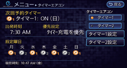 充電施設によっては、電源が時間帯によってON/OFFするタイマー機能をもった設備があります。このような充電施設でタイマーエアコンを設定する場合は、充電器の電源がONになっているか確認してください。