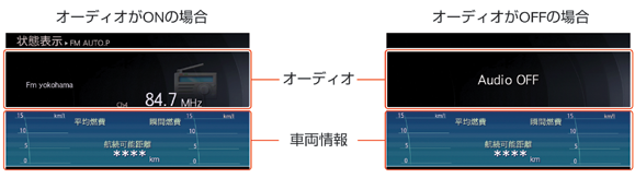 状態表示スイッチを押すと、現在使っているオーディオや車両情報を確認できます。