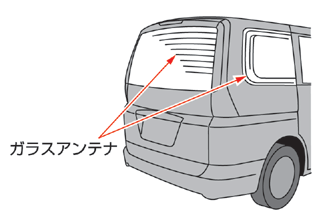 アンテナ線はリヤサイドウインドーガラスまたはリヤウインドーガラスの内側にあります。