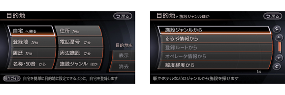 施設ジャンルほか 以下の項目の選択画面を表示します。 |