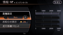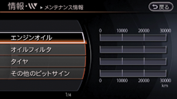 走行距離を設定してメンテナンスをお知らせする画面を表示します。4 種類の項目に対して設定ができます。