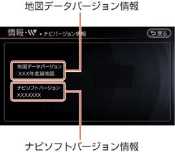 地図データおよびナビソフトのバージョンを確認できます。