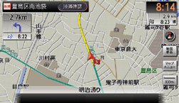 ルートガイド中、ルート前方に渋滞情報を受信すると、渋滞のアナウンスと画面上に渋滞確認の表示がされます。 (※1)