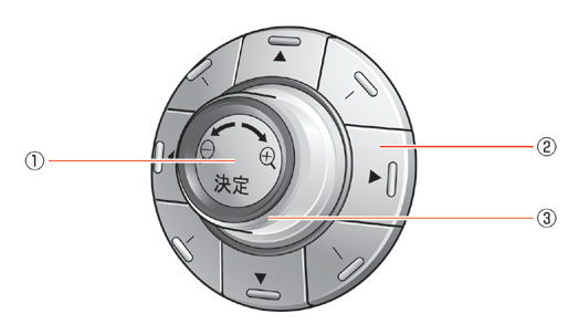 左右に回してメニューの項目を選択します。また地図を表示していると きは、地図の縮尺を選ぶこともできます。