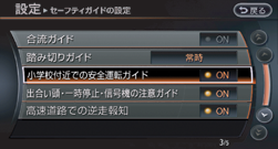ナビゲーション → セーフティガイドの設定を選ぶ