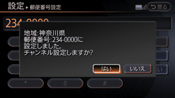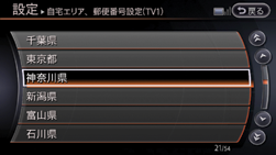 メニュー → 設定 → 自宅エリア、郵便番号設定(TV1)を選ぶ