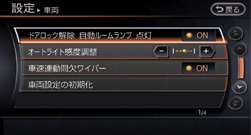 以下の設定ができます。各機能の詳細は車両の取扱説明書をお読みください。