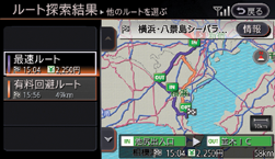 最新の交通情報がダウンロードされ、ルート探索結果画面が表示されます。