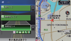 高速道路上のIC、JCT、SA、PAの名称とその情報が表示されます。