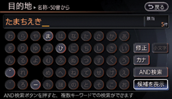 AND検索を選ぶと、入力欄にANDが挿入され、キーワードを入力できます。ANDの後ろには、名称、ジャンル、地名をキーワードとして入力できます。ANDの前に入力するキーワードは必ず名称を使用してください。 キーワードの組み合わせによっては、検索できないことがあります。