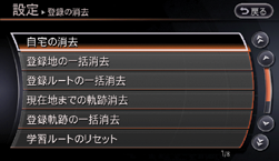 登録した場所やルートなどを一括で消去ができます。一度消去した場所やルートなどは復帰できません。十分に確認してから消去してください。