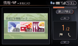 おまかせ再生( おまかせ再生 ) カーウイングス情報センターがおすすめ情報を、場所や時間に応じて自動的に提供するサービスです。