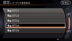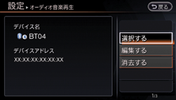 表示されるリストには、ハンズフリーフォンとして登録した携帯電話機も表示されます。必ずBluetooth®オーディオ機器として登録した機器を選んでください。
