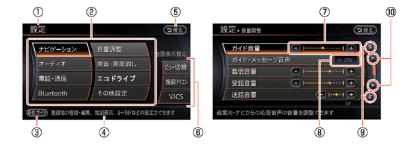 1つ前の画面に戻ります。メニュー画面の先頭の場合は、現在地画面を表示します。