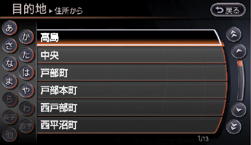 リスト画面の50音を選ぶと、選んだ文字で始まるリストが表示されます。