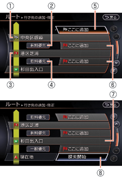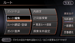 設定されているルートの目的地や経由地、探索条件を変更できます。