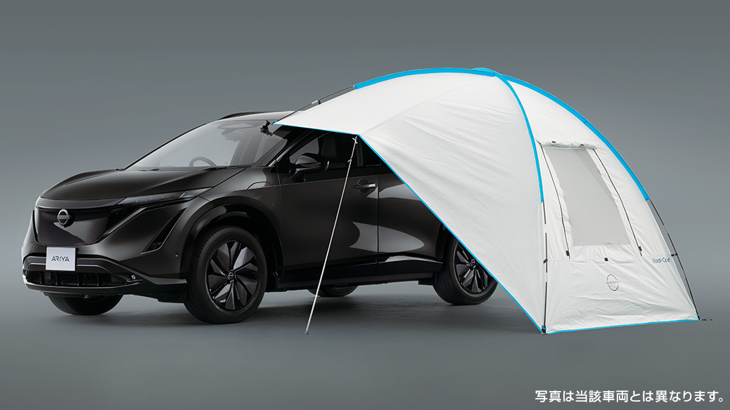 クルマの脇やバックドアに設置して、キャンプなどの際に手軽に屋根を作れます。付属の専用ポールを使用するとキャノピーとしても使用可能。