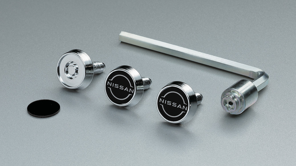 ■Nissanブランドロゴステッカー付、ロックボルト3本:キー付