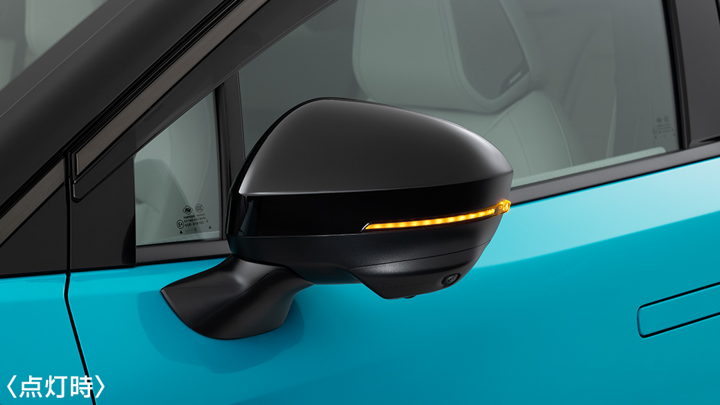 フロントターンランプと連動してドアミラーのLEDが流れるように光り、