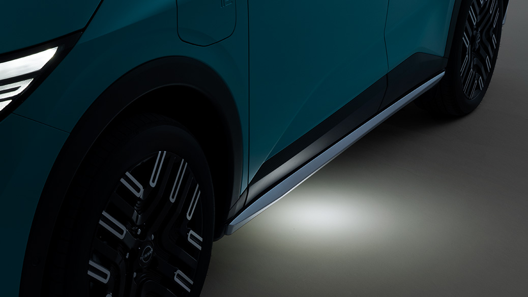 キーアンロックまたはドアオープンに連動して点灯。足もとを明るく照らし、夜間や暗い駐車場での安全な乗り降りをサポートします。