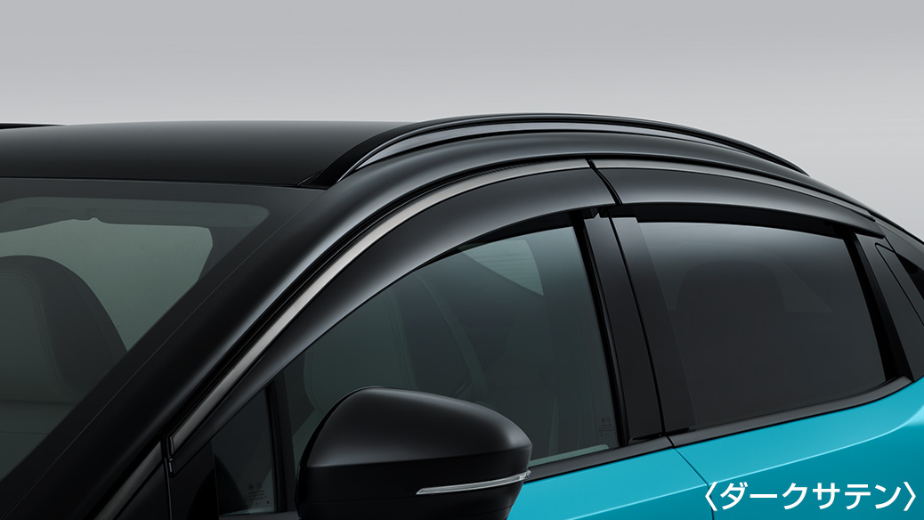 車両ドアサッシュモールディング色に合わせて、クローム、ダークサテンの2タイプをご用意。小雨でも窓を少し開けて換気ができます。