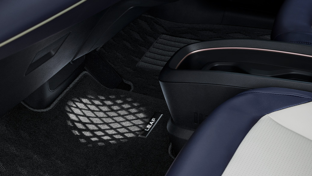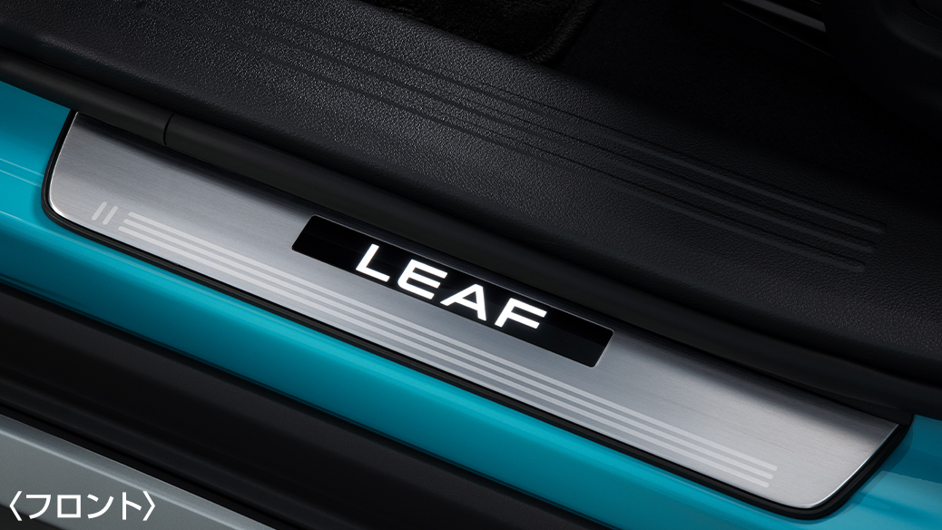 ドアを開けるとLEAFロゴのLEDが発光し、乗る人を迎える先進的なデザインを採用。