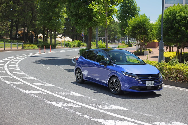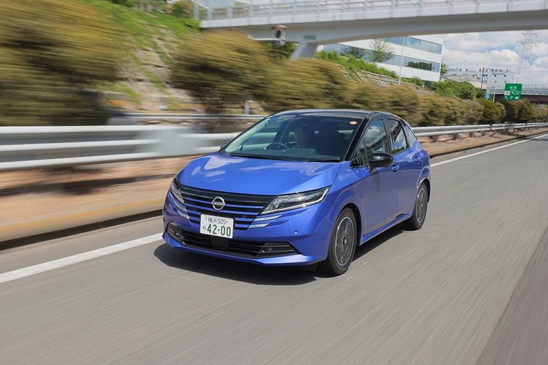東京の街を駆けていく1台のコンパクトカー。無意識のうちに目で追ってしまったのは、街に映える「スミレ」カラーの美しいボディデザインのためか、あるいは、スーッと気持ちよさそうに加速する、軽快な身のこなしによるものか。「乗ってみたい」「走らせてみたい」と思わせるそのクルマは、今回のレビューの主役、「ノート e-POWER」。2023年から2年連続でコンパクトカー販売台数No.1※2に輝く、言わずと知れたコンパクトカーの代名詞的存在だ。