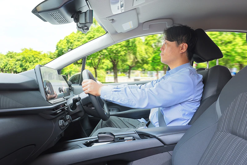 室内の広さはクラストップレベル。運転席に身長180cmのスタッフが座った状態でも、後席の膝前スペースには十分なゆとりがあり、ヘッドクリアランスも窮屈さを感じない。2段階切り替えが可能な後席リクライニングも見逃せないポイントで、後席に座って2時間ほどドライブしてみたが、ゆったりと過ごすことができ、疲れを感じなかった