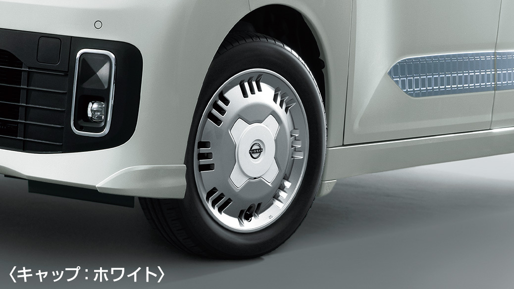 足元をモダンな印象にドレスアップします。ホイールキャップはホワイト/ブラック、2種類から選べます。