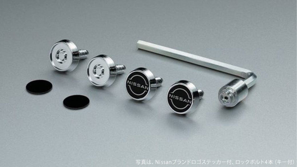 ■Nissanブランドロゴステッカー付:ロックボルト4本(キー付)