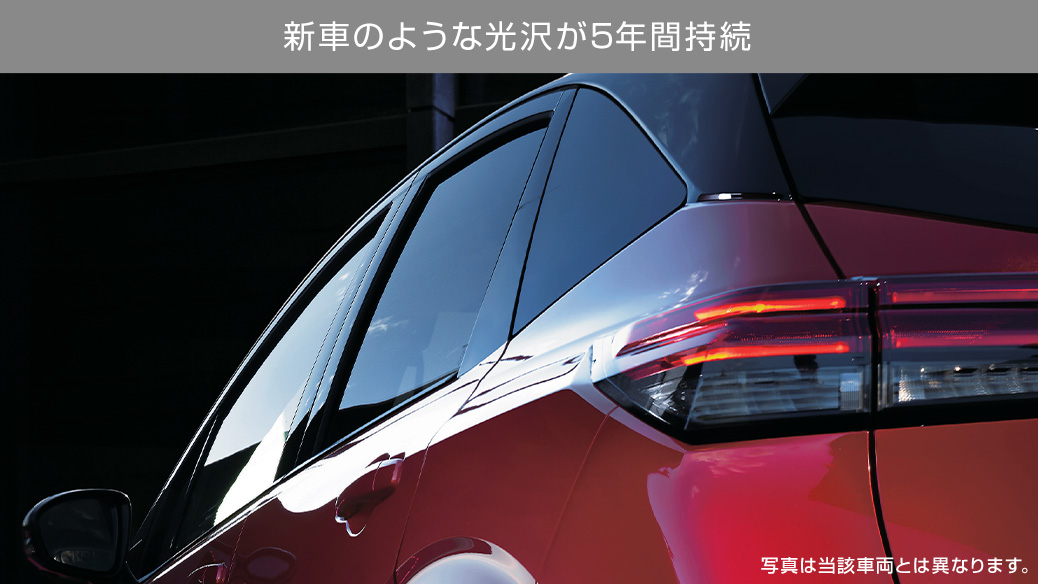 ■高密度なガラスコーティング被膜により深みのある艶と光沢を実現。愛車を汚れから守る防汚性。普段の洗車・お手入れが簡単になります。信頼と安心の、日産の5年保証付き。※