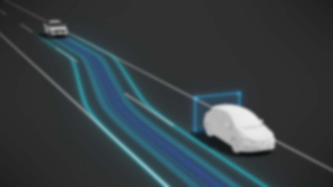 高精度地図データと360度周囲センシングによって同一車線内のハンズオフが可能となり、ドライバーの運転操作を幅広くサポート。 さらに前方車の速度に応じて、システムが追い越しを提案。 ハンドルに手を添えスイッチを押すだけで車線変更を支援します。