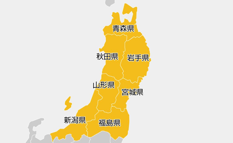 青森県、岩手県、秋田県、宮城県、山形県、福島県、新潟県